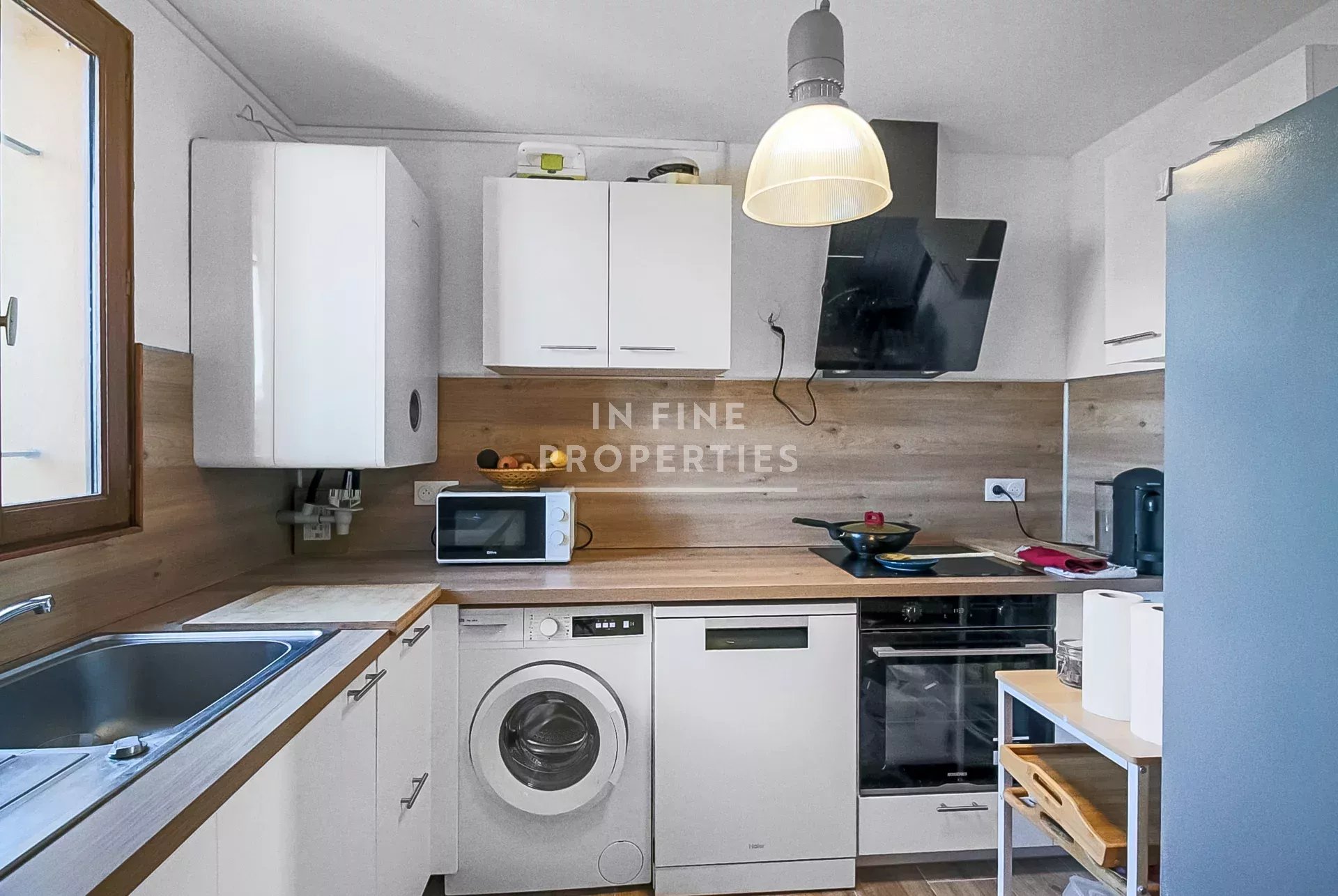 Elle se compose au rez-de-chaussée, d'une buanderie, un wc indépendant, une cuisine équipée et un lumineux séjour ouvrant sur la terrasse et le jardin.